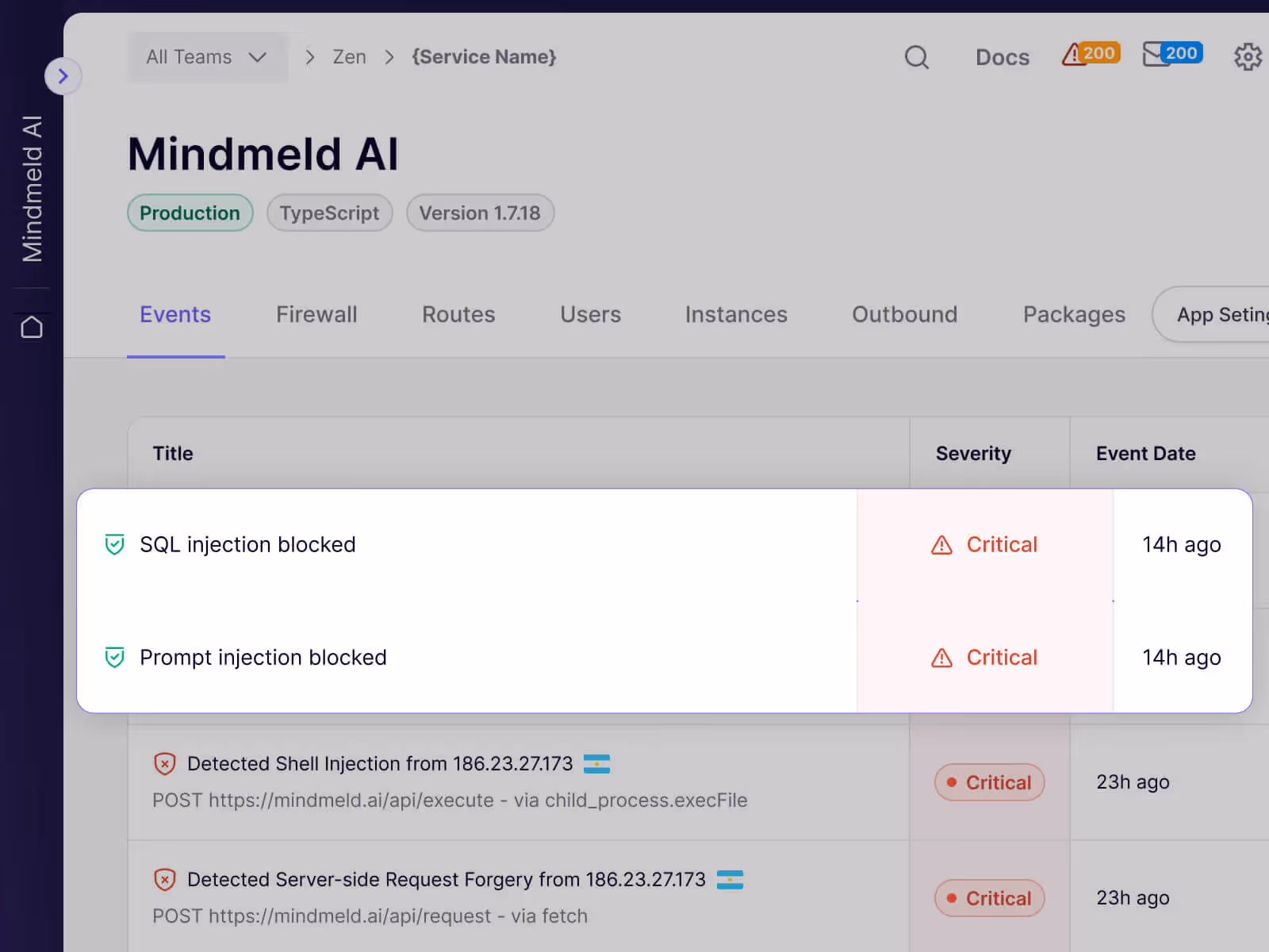 Zen is your in-app firewall for peace of mind. Auto block critical injection attacks, introduce API rate limiting & more