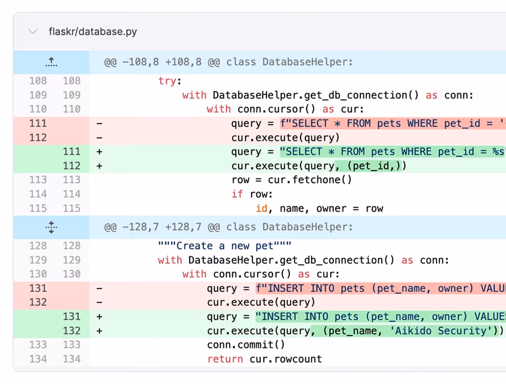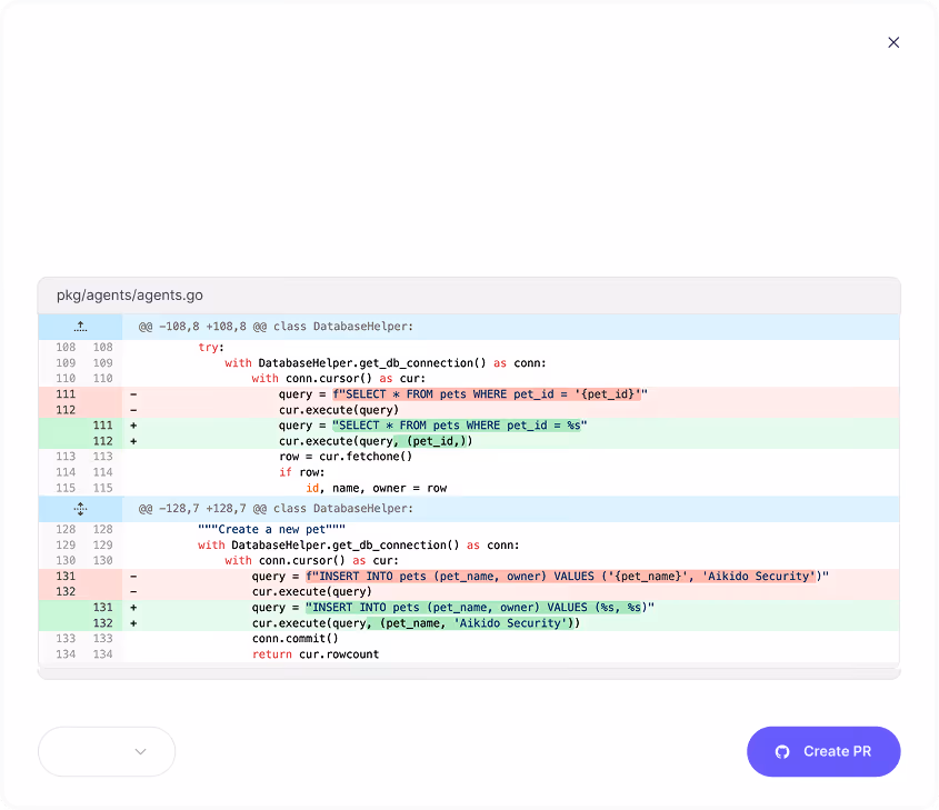Because Aikido already understands your code and environment, AutoFix generates targeted code changes for confirmed vulnerabilities. Once applied, the issue can be immediately retested to verify that it is fully resolved.