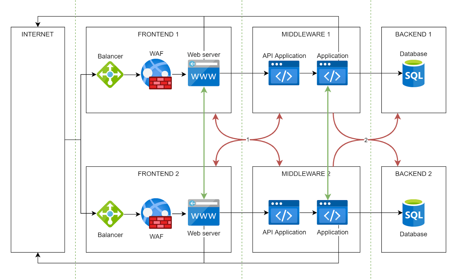 If you recall the network segmentation illustration above, there is a WAF between the frontend load balancer and the web server.