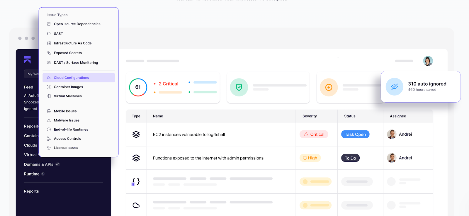 With all the above set, continuously detect misconfigs, exposures, and policy violations across all your clouds and fix them fast.