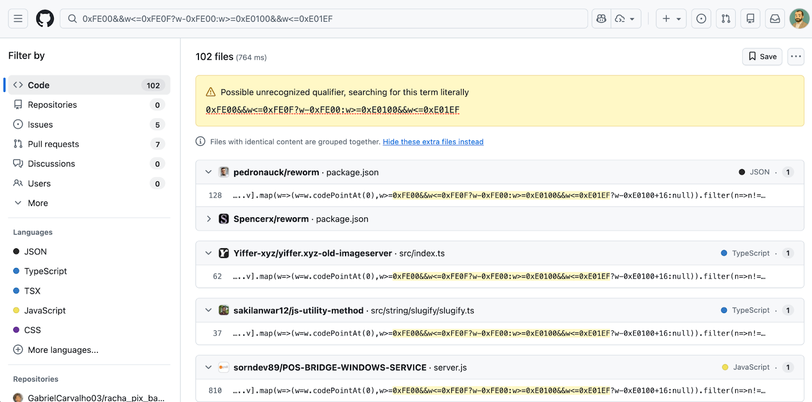 We are observing a mass campaign by the Glassworm threat actor spreading across open source repositories. A GitHub code search for the decoder pattern currently returns at least 151 matching repositories, and that number understates the true scope, since many affected repositories have already been deleted by the time of writing. The GitHub compromises appear to have taken place between March 3 and March 9.