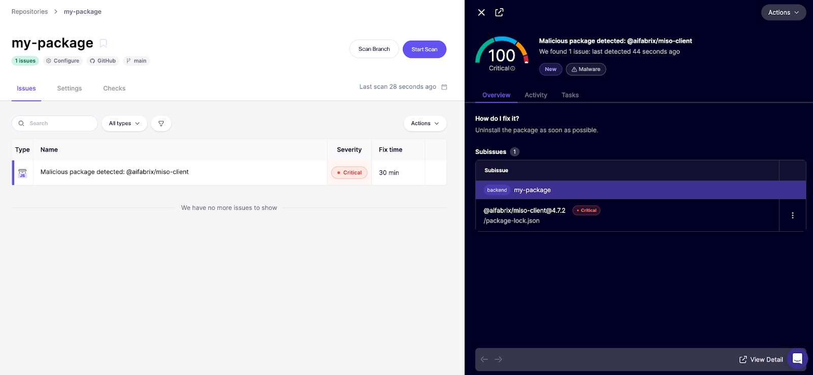 If you already use Aikido, these packages would be flagged in your feed as a 100/100 critical finding.