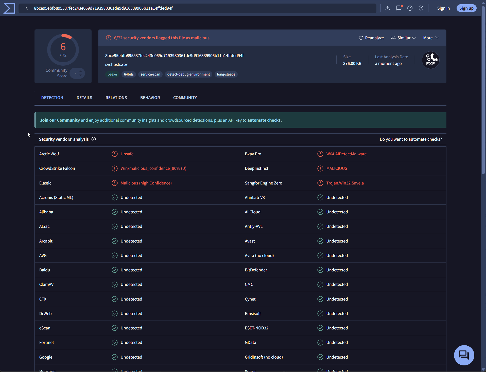 We retrieved the binaries, and submitted them to VirusTotal for analysis:
