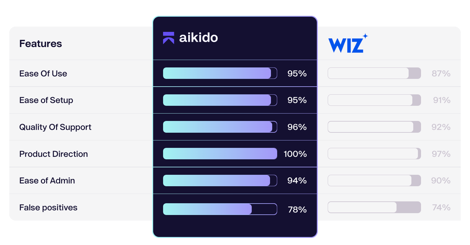 One company that tried both tools said, "We trialled Wiz Code at the same time as Aikido. It was harder to set up than Aikido.” Aikido stood out for being an all-around strong option, and it didn’t break the bank.